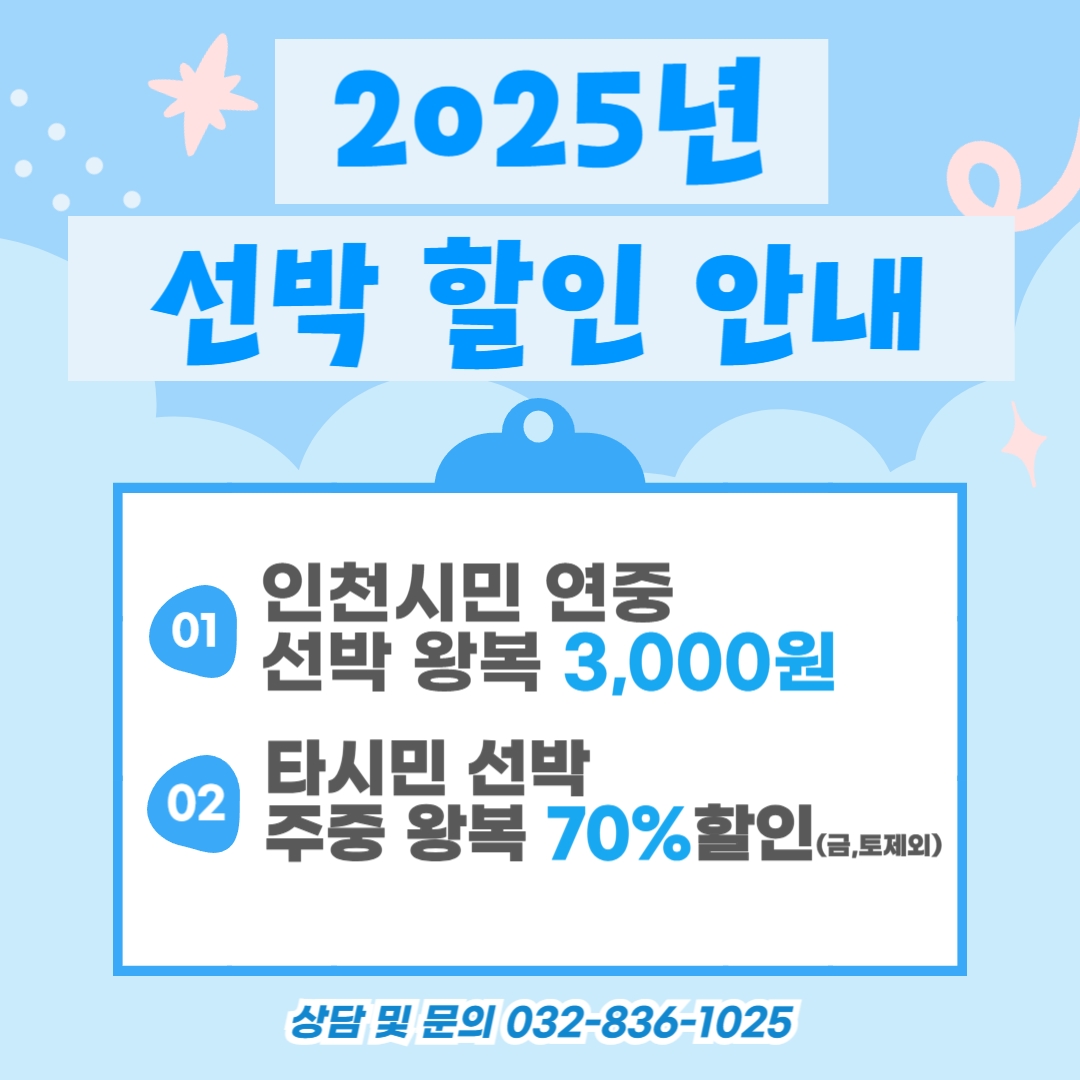 10인 이상 가능한 가성비 굿! 단체 맞춤 견적 문의 친구들과의 여행, 가족들과의 여행, 소모임에서의 여행 , 백령도/대청도여행을 편안하게 계획해 보세요.